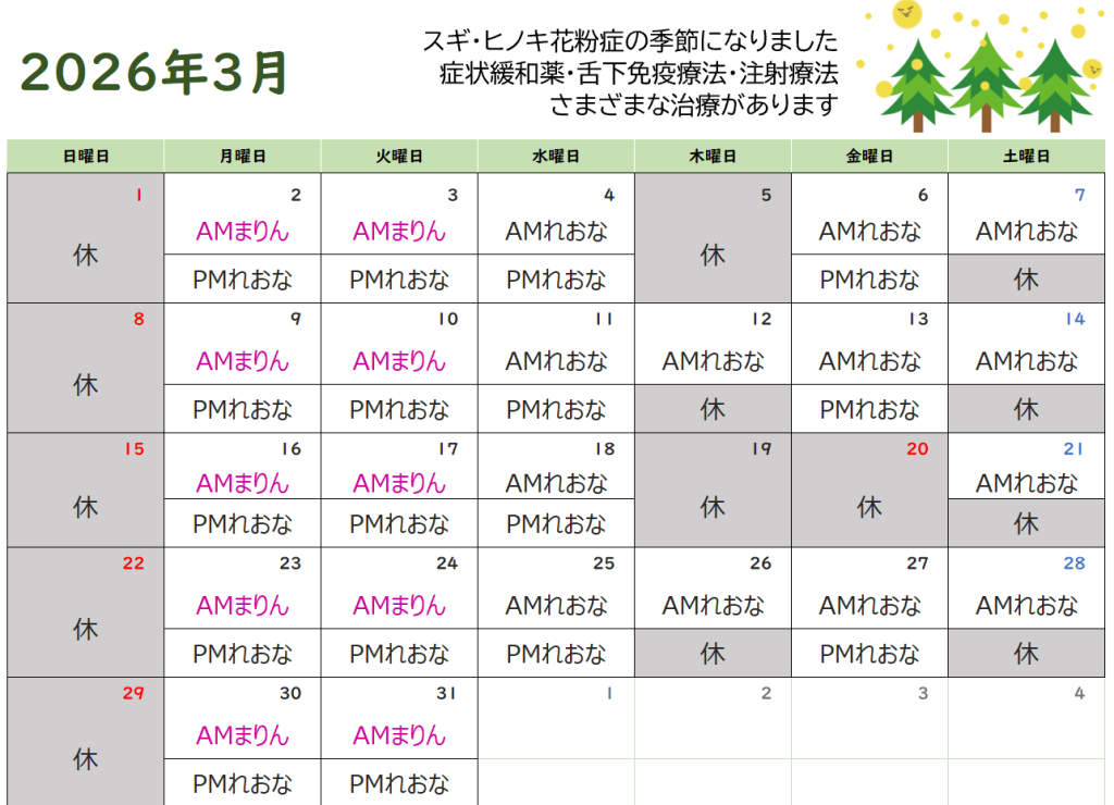 2月の診療予定カレンダー